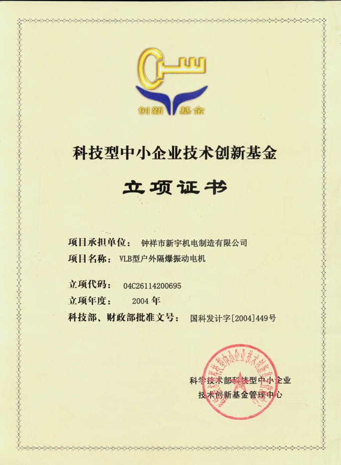 科技型中小企業技術創新基金立項證書
